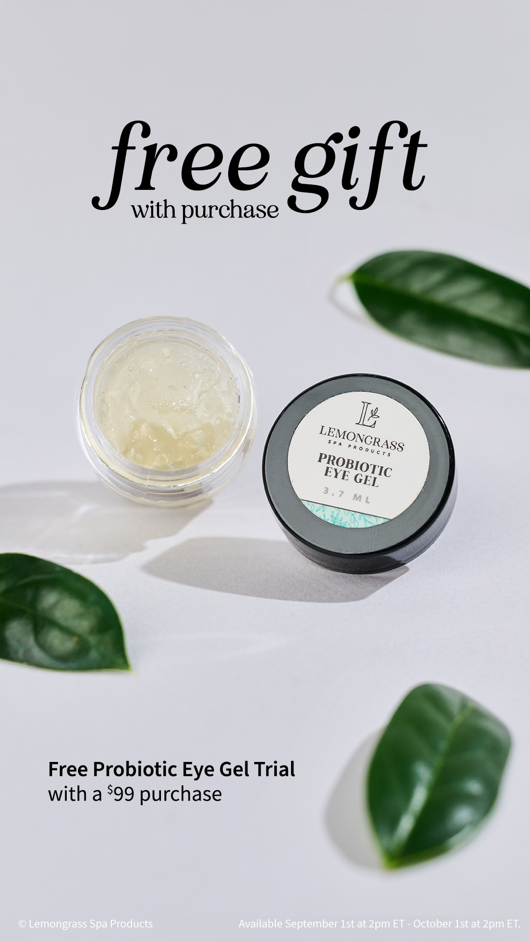 | Spend $99 and receive a FREE Probiotic Eye Gel trial! This refreshing formula helps soothe, depuff and brighten the look of skin around the eye area. No code needed! Free Probiotic Eye Gel trial automatically added to qualifying orders.