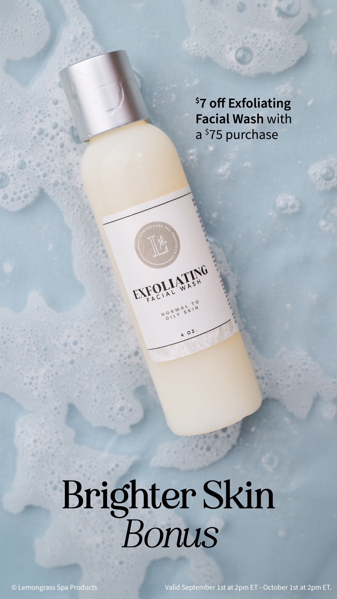 | Spend $75 and treat yourself to our Exfoliating Facial Wash for only $18 - a polished perk for radiant skin. Be sure to add item F5677 to cart! |